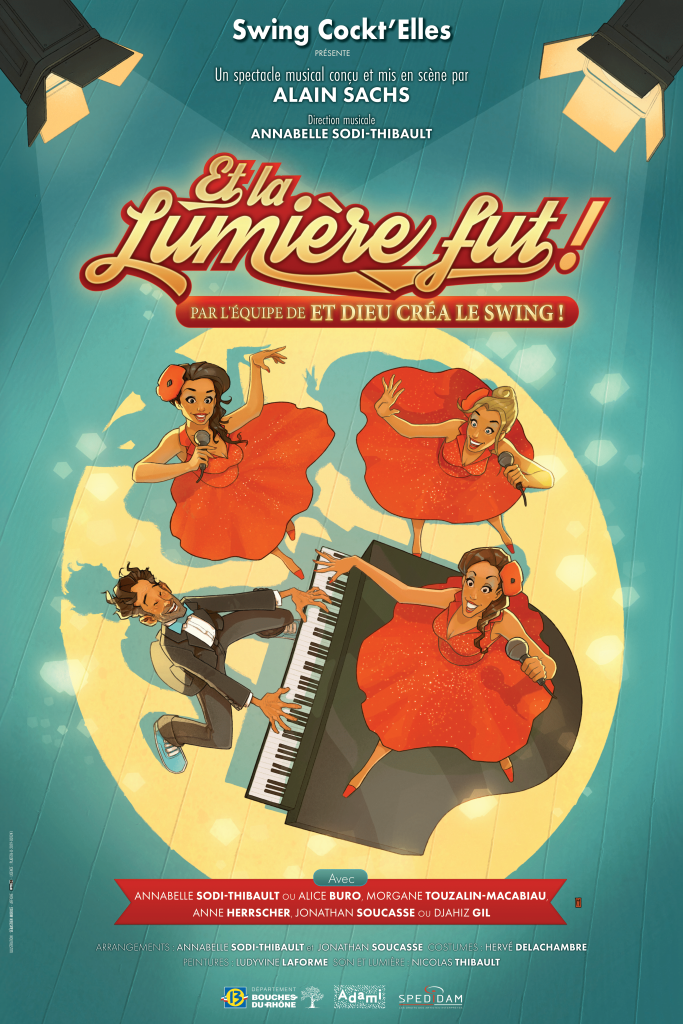Après le succès de « Et Dieu créa le Swing!», la merveilleuse collaboration des SwingCockt’Elles avec le metteur en scène Alain Sachs se poursuit avec ce nouvel opus dont il assure la conception et la mise en scène. « Et la lumière fut ! » prend le parti de l’espoir. A une époque emplie de doute et d’angoisse quant à l’avenir du monde, le trio de chanteuses oppose son énergie créatrice. Avec humour et toujours accompagnées de leur pianiste virtuose, elles feront un état du monde et de la condition humaine.